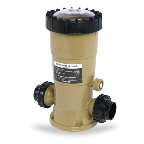 Dosador Automático de Cloro em Pastilhas para Piscinas - Vulcano Dosador Automático de Cloro em Pastilhas para Piscinas - Vulcano O Dosador Clorador Automático de Pastilhas Netuno Vulcano é produzido com resina termoplástica de alta resistência para suportar a ação corrosiva do cloro em pastilha tricloro, também conhecido como ácido tricloroisocianurico, que normalmente tem concentração de 90% de cloro ativo, sendo o cloro mais reativo e com maior eficácia no tratamento da água da sua piscina.O Dosador de Cloro tem a função de automatizar o tratamento químico da água com a dissolução controlada de cloro em tabletes, facilitando a limpeza e a eficácia na homogeneização do produto em toda a água da piscina.Este acessório deverá ser instalado na tubulação de retorno da piscina, após o filtro e o aquecedor se houver . Sempre que possível é recomendável que se instale o clorador acima do nível da água da piscina.Recomendamos o uso de uma válvula de retenção antes do dosador de cloro e a utilização de timer no filtro para controlar a mesma dosagem diária de cloro na piscina. Características: Material: Termoplástico altamente resistenteMarca: Netuno Vulcano Peso do Produto: 2 KgCapacidade de carga: 2,6 KgCarga: Pastilha de cloro de dissolução lenta 20 / 200 g.Dosagem: 10/38 g/hPressão máxima de trabalho: 1,6 Kg/CmVazão Máxima: 18 m/h Itens Inclusos:01 Dosador Automático de Cloro em Pastilhas para Piscinas - Vulcano01 Manual de Instalação Garantia:01 ano contra defeitos de fabricação