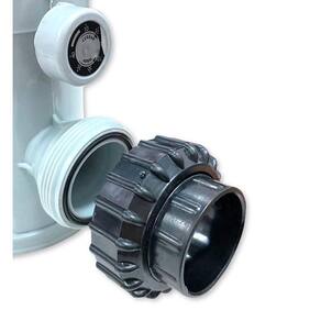 Dosador de cloro em tabletes O dosador de cloro funciona em conjunto com o sistema de filtração da piscina, conectado em linha ao circuito de retorno. Devido à sua grande capacidade de carga e fácil manuseio da válvula de controle de cloro, ele permite um serviço de dosagem por várias semanas sem recarga, obtendo uma dispersão uniforme para todo o volume de água e um eficiente tratamento de desinfecção da piscina. Funciona com tabletes de cloro de baixa dissolução ácido tricloroisocianúrico de 10 a 200 gramas.