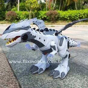 Dragão Cibernético Que Anda E Solta Fumaça Luz Som De 45Cm Branco Cyber Dragão que Solta Fumaça com Som e Luz O Cyber Dragão Tiranossauro Rex é um hybrido Robótico com movimentos realistas, ele mexe a causa, anda, mexe as asas, acende uma luzes no corpo e na boca acende uma luz vermelha no momento em que vai soltar a fumaça, cria a magia e ilusão de estar cuspindo fogo, um arraso de brinquedo que encanta até adultos. Fumaça: A fumaça é a vaporização de agua, retire a tampa da cabeça para encher o reservatório de água. Recursos: - Anda - Mexe as asas - Mexe o rabo - Luzes - Solta Fumaça Especificações: Modelo: Cyber Dragão Composição: Plástico e Metal Código do fabricante: CP0081193 Idade Mínima: Á partir de 3 anos Certificado INMETRO: CE-BRI/BRICS 00137-15 NM2300/2002 Itens Inclusos: 1 x Cyber Dragão