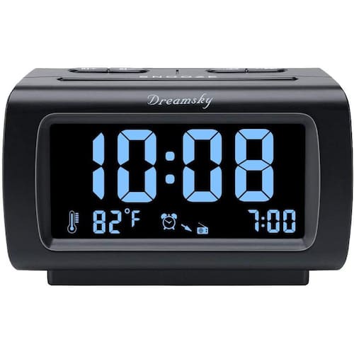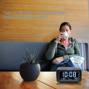 Despertador decente com tela grande e clara Veja claramente o tempo na tela LCD grande e clara com um belo dígito jumbo iluminado azul. Nada de olhar para ler o tempo, mesmo sem seu copo. Visual decente, design limpo, simples e esteticamente agradável. Não muito grande, não muito pequena, decoração mesmo como decoração adicional. Controle de brilho ajustável Com o botão dimmer, você é capaz de ajustar o brilho a partir da visualização de conforto de nível 100-0 girando a roda mais fraca, ou desligar o brilho completamente para dormir à noite. Sem luz, sem reclamações, o relógio ainda está funcionando. Tenha um bom descanso! Desfrute de rádios FM Botão de rádio único liga/desliga, sintonizando em seu canal favorito com ajuste de volume de nível 0-15. Embutido em alto-falante de alta qualidade, o som é alto e claro, melhore sua experiência de escuta. Temporizador de sono programável Durma no rádio usando o temporizador de sono programável. 10-120 minutos opcionais. Alarme gradual com volume ajustável O recurso de alarme de vigília gradual começa com um volume sutil e baixo e, em seguida, gradualmente aumenta para um nível razoavelmente alto, a fim de acordá-lo suavemente do sono. O som dos alarmes pode ser ajustado ao nível desejado, seja qual for o despertar selecionado para a campainha ou rádio. Campainha com ajuste de nível 3 (alto, médio, baixo). Rádio com ajuste de nível 1-15. A função Snooze Button Snooze permitirá que você pegue um olho de fechamento extra. Intervalo de 9 minutos para silenciar o som para cada botão de clique, que pode ser repetido até uma hora até desligar. Porta de carregamento USB A porta USB rotulada "out" para outro dispositivo inteligente carregando como cer, tablet etc. Muito útil e conveniente. Backup da bateria Uma bateria de backup opcional mantém o relógio funcionando durante uma queda de energia.
