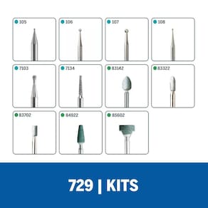 Dremel Kit De Acessórios De Micro Retífica Para Gravar, Esculpir e Esmerilhar - 11 Peças Modelo 729 As pontas de diamante e pedras de amolar de carboneto de silício. Detalhadamente nesse kit contém 1 estojo plástico com 1 escareador para gravar de ponta redonda de 0,8mm para madeira, metal, couro, plástico, EVA e papelão (modelo 105), 1 escareador para gravar de ponta redonda de 1,6mm para madeira, metal, couro, plástico, EVA e papelão (modelo 106), 1 escareador para gravar de ponta redonda de 2,4mm para madeira, metal, couro, plástico, EVA e papelão (modelo 107), 1 escareador para gravar de ponta quadrada de 0,8mm para madeira, metal, couro, plástico, EVA e papelão (modelo 108), 1 escareador diamantado para gravar de ponta redonda de 2mm vidro, cerâmica e pedra (modelo 7103), 1 escareador diamantado para gravar de ponta fina de 2mm para vidro, cerâmica e pedra (modelo 7134), 1 pedra formato chama de fogo para esmerilhar de 7,1mm para vidro, pedra, cerâmica, alumínio e cobre (modelo 83142), 1 pedra formato cilíndrica de ponta arredondada para esmerilhar de 3,2mm para vidro, pedra, cerâmica, alumínio e cobre (modelo 83322), 1 pedra formato quadrada para esmerilhar de 3,2mm para vidro, pedra, cerâmica, alumínio e cobre (modelo 83702), 1 pedra formato pêra para esmerilhar de 4,8mm para vidro, pedra, cerâmica, alumínio e cobre e gravar em vidro (modelo 84922), 1 pedra formato disco para esmerilhar de 10,3mm para vidro, pedra, cerâmica, alumínio e cobre (modelo 85602).Kit de Acessórios Gravar 11 Peças.1 estojo plástico com 1 escareador para gravar de ponta redonda de 0,8mm para madeira, metal, couro, plástico, EVA e papelão (modelo 105), 1 escareador para gravar de ponta redonda de 1,6mm para madeira, metal, couro, plástico, EVA e papelão (modelo 106), 1 escareador para gravar de ponta redonda de 2,4mm para madeira, metal, couro, plástico, EVA e papelão (modelo 107), 1 escareador para gravar de ponta quadrada de 0,8mm para madeira, metal, couro, plástico, EVA e papelão (modelo 108), 1 escareador diamantado para gravar de ponta redonda de 2mm vidro, cerâmica e pedra (modelo 7103), 1 escareador diamantado para gravar de ponta fina de 2mm para vidro, cerâmica e pedra (modelo 7134), 1 pedra formato chama de fogo para esmerilhar de 7,1mm para vidro, pedra, cerâmica, alumínio e cobre (modelo 83142), 1 pedra formato cilíndrica de ponta arredondada para esmerilhar de 3,2mm para vidro, pedra, cerâmica, alumínio e cobre (modelo 83322), 1 pedra formato quadrada para esmerilhar de 3,2mm para vidro, pedra, cerâmica, alumínio e cobre (modelo 83702), 1 pedra formato pera para esmerilhar de 4,8mm para vidro, pedra, cerâmica, alumínio e cobre e gravar em vidro (modelo 84922), 1 pedra formato disco para esmerilhar de 10,3mm para vidro, pedra, cerâmica, alumínio e cobre (modelo 85602)Garantia: 6 meses Gravar, Esculpir e Esmerilhar.Madeira, Metal, Plástico, Couro, Borracha EVA, Papelão, Cerâmica, Pedra, Vidro, Fibra de Vidro.