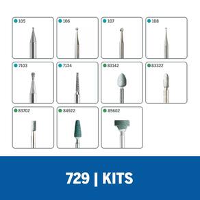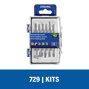 Dremel Kit De Acessórios De Micro Retífica Para Gravar, Esculpir e Esmerilhar - 11 Peças Modelo 729 As pontas de diamante e pedras de amolar de carboneto de silício. Detalhadamente nesse kit contém 1 estojo plástico com 1 escareador para gravar de ponta redonda de 0,8mm para madeira, metal, couro, plástico, EVA e papelão modelo 105 , 1 escareador para gravar de ponta redonda de 1,6mm para madeira, metal, couro, plástico, EVA e papelão modelo 106 , 1 escareador para gravar de ponta redonda de 2,4mm para madeira, metal, couro, plástico, EVA e papelão modelo 107 , 1 escareador para gravar de ponta quadrada de 0,8mm para madeira, metal, couro, plástico, EVA e papelão modelo 108 , 1 escareador diamantado para gravar de ponta redonda de 2mm vidro, cerâmica e pedra modelo 7103 , 1 escareador diamantado para gravar de ponta fina de 2mm para vidro, cerâmica e pedra modelo 7134 , 1 pedra formato chama de fogo para esmerilhar de 7,1mm para vidro, pedra, cerâmica, alumínio e cobre modelo 83142 , 1 pedra formato cilíndrica de ponta arredondada para esmerilhar de 3,2mm para vidro, pedra, cerâmica, alumínio e cobre modelo 83322 , 1 pedra formato quadrada para esmerilhar de 3,2mm para vidro, pedra, cerâmica, alumínio e cobre modelo 83702 , 1 pedra formato pêra para esmerilhar de 4,8mm para vidro, pedra, cerâmica, alumínio e cobre e gravar em vidro modelo 84922 , 1 pedra formato disco para esmerilhar de 10,3mm para vidro, pedra, cerâmica, alumínio e cobre modelo 85602 . Kit de Acessórios Gravar 11 Peças. 1 estojo plástico com 1 escareador para gravar de ponta redonda de 0,8mm para madeira, metal, couro, plástico, EVA e papelão modelo 105 , 1 escareador para gravar de ponta redonda de 1,6mm para madeira, metal, couro, plástico, EVA e papelão modelo 106 , 1 escareador para gravar de ponta redonda de 2,4mm para madeira, metal, couro, plástico, EVA e papelão modelo 107 , 1 escareador para gravar de ponta quadrada de 0,8mm para madeira, metal, couro, plástico, EVA e papelão modelo 108 , 1 escareador diamantado para gravar de ponta redonda de 2mm vidro, cerâmica e pedra modelo 7103 , 1 escareador diamantado para gravar de ponta fina de 2mm para vidro, cerâmica e pedra modelo 7134 , 1 pedra formato chama de fogo para esmerilhar de 7,1mm para vidro, pedra, cerâmica, alumínio e cobre modelo 83142 , 1 pedra formato cilíndrica de ponta arredondada para esmerilhar de 3,2mm para vidro, pedra, cerâmica, alumínio e cobre modelo 83322 , 1 pedra formato quadrada para esmerilhar de 3,2mm para vidro, pedra, cerâmica, alumínio e cobre modelo 83702 , 1 pedra formato pera para esmerilhar de 4,8mm para vidro, pedra, cerâmica, alumínio e cobre e gravar em vidro modelo 84922 , 1 pedra formato disco para esmerilhar de 10,3mm para vidro, pedra, cerâmica, alumínio e cobre modelo 85602 : 6 meses Gravar, Esculpir e Esmerilhar. Madeira, Metal, Plástico, Couro, Borracha EVA, Papelão, Cerâmica, Pedra, Vidro, Fibra de Vidro.