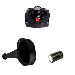 Melhore o som do seu veiculo com esse kit com drive unlike. Especificações Técnicas: - Engate Rápido - Reparo fácil de se encontrar - Conexão rosca - Impedância nominal: 8 OHMs - Potência RMS: 100 RMS - Resposta Frequência: 500Hz à 9Khz - Bobina: Kapton - Recomenda-se o uso de capacitor ou crossover Conteúdo da embalagem: - 1 Driver Corneta Unlike UND 400 - 100W RMS - 1 Capacitor para corneta - 1 Boca de corneta longa