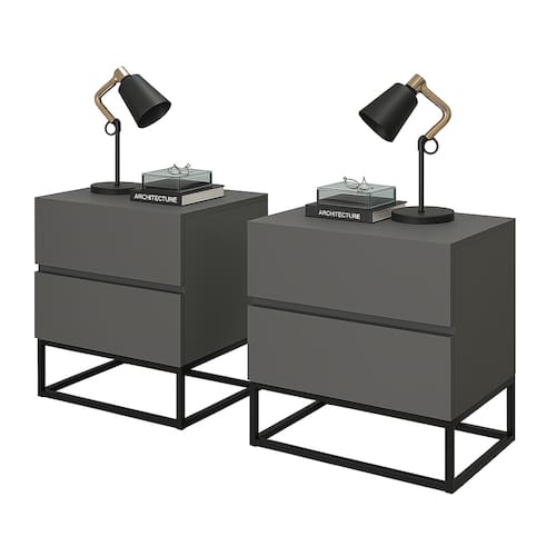 Kit 2 Criados-Mudos Eros 60cm – Design Industrial e Elegância Transforme seu quarto com o toque moderno do Criado Eros! Com acabamento premium, duas gavetas espaçosas e pés de ferro no estilo industrial, une beleza, praticidade e resistência.