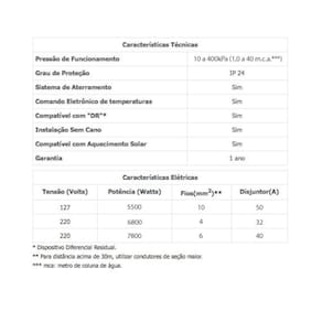- Fio(s) (mm2): 6mm (220V)