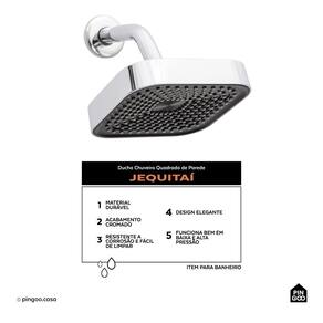 Conteúdo da embalagem: Ducha Chuveiro Quadrado de Parede Jequitaí Anéis de Vedação Sistema de fixação
