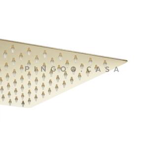 Marca: PINGOO.CASA Bitola: 1/2' Vazão: 12 litros por minuto. Pressão Mínima de água recomendada: 3 mca. Pressão Máxima de água Recomendada: 40 mca. Dimensões: Ducha 30x30x0,5 cm, braço 2x2x25 cm Material: Ducha em aço inoxidável 304, braço e acabamento de parede em aço inoxidável 201