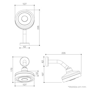 Ficha técnica: Diâmetro: Ø12 cm Pressão recomendada: 5 m.c.a até 40 m.c.a. Vazão: 6 l/min. com 5 m.c.a Medidas: 17(A) x 12,7(L) x 23,5(C) cm Diferencial: Sistema autolimpante Acabamento: Aço Escovado Material: ABS de alta resistência