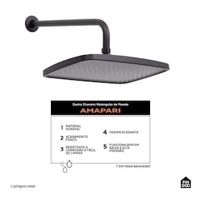 Conteúdo da embalagem: Ducha chuveiro retangular de parede Amapari Anéis de Vedação Sistema de fixação