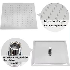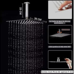 Ducha Chuveiro Slim Quadrado Metal 30X30Cm Com Braço De Teto