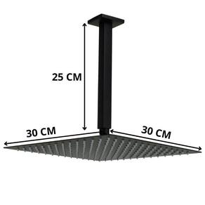 Informações Técnica Ducha: - Largura: 30 cm. - Comprimento: 30 cm. - Espessura: 0,5 cm. - Espessura da borda: 2 mm. - Modelo: Quadrado. - Aquecimento: A gás ou solar. - Aquecedor Compatível: Aquecedor a Gás, Elétrico ou Solar. - Articulável: Dispositivo que permite ajustar ela na inclinação desejada. - Conexão: 1/2 Padrão. - Acabamento: Acabamento arredondado para evitar lesões. - Vazão: 15 L/min por 10 m.C.A. - Polegada: 8 polegadas - Material: Inox 201 - Pressão mínima: 4 m.C.A. - Pressão máxima: 32 m.C.A. - Cor: Preto fosco - Peso: 1,260 kg - Material: Latão Inox e Cobre .