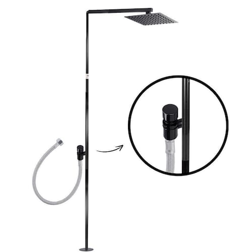 Ducha externa preta com prato quadrado e registro automático Ideal para áreas de lazer, piscinas, quintais, praias ou jardins. Produto de alta durabilidade, com design moderno e funcional. Acionamento automático através de registro com fechamento automático após 6 segundos. O que é o produto Chuveiro externo fabricado em aço gralvanizado, resistente à corrosão e ideal para uso contínuo em áreas externas. Equipado com prato redondo e registro automático, o sistema proporciona praticidade e economia de água. Benefícios Estrutura 100% em aço inox 304, resistente ao tempo e ferrugem Registro automático com fechamento em poucos segundos Prato quadrado com jato amplo e suave Ideal para uso residencial, comercial, clubes, pousadas e condomínios Produto pronto para instalação Design moderno que valoriza o ambiente externo Fácil manutenção e limpeza O que acompanha a compra 1 estrutura de ducha com suporte para fixação 1 prato de ducha quadrado 1 registro com sistema automático Chumbador para instalação Manual de instruções Veda rosca líquida para vedação Dúvidas frequentes O acionamento é automático mesmo Sim, o registro tem sistema automático de fechamento após 6 segundos. Basta pressionar e a ducha liga, fechando sozinha. Pode ser instalado em qualquer parede Sim. Pode ser fixado em pisos de concreto, decks ou base firme. Acompanha chumbador. Pode ser com água quente Pode sim, desde que seja instalado um aquecedor, que não acompanha o produto. Já vem com os itens para instalação Sim, vai com todos os suportes necessários para instalação segura. de qualidade beluga Somos especialistas em produtos para lazer e piscina desde 2005. Produtos fabricados com materiais premium e alta durabilidade. Marca: Não Informado Ean: 7895897005039
