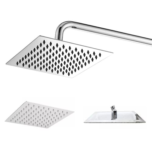 Ducha toda em aço inox cromado na medida de 20x20cm com braço de 37cm.