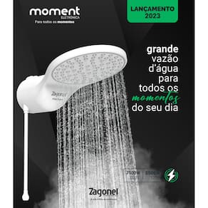 Com design moderno e linhas que remetem a identidade da Zagonel, a ducha Moment possui temperatura progressiva e jato com grande vazão de água, foi pensada para proporcionar uma experiência de banho relaxante e revigorante para todos os momentos do seu dia.