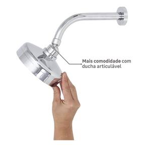 Especificacoes Tecnicas: - Material: Combinacao de metal e plastico, garantindo durabilidade e resistencia. - Cor: Cromado, oferecendo um aspecto prateado que adiciona um toque de elegancia ao ambiente. - Dimensoes: 12,4 cm de largura, 16,9 cm de altura e 28,5 cm de profundidade. - Pressao de funcionamento: Opera eficientemente com pressao minima de 2,00 mca e maxima de 40,00 mca. - Peso do produto: 0,90 Kg. - O produto e acompanhado por embalagem, facilitando o transporte e garantindo a integridade do item.