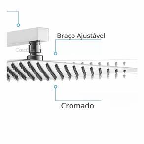 Ducha Quadrada 20x20 cm com Braço 40 cm – Aço Galvanizado Inox 201 – Espessura do Braço 0,6 mm