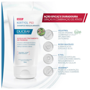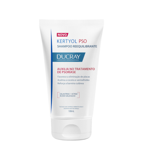 Shampoo para couro cabeludo com psoríase. DUCRAY Kertyol PSO Treatment acalma a coceira e vermelhidão, proporcionando alívio.