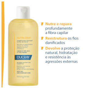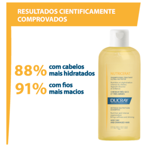 O Shampoo DUCRAY Nutricerat garante a restauração e reparação, fortalecendo contra agressões externas em cabelos muito secos. Sua fórmula, com a ação nutritiva da Manteiga de Illipé e Complexo Relipidizante, atua diretamente nas causas e consequências do ressecamento das madeixas, deixando cabelos 88% mais hidratados e 91% mais macios em apenas 30 dias.