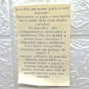 COMO CUIDAR DE UM DUENDE NA GARRAFA: 1. Trate com respeito Acredita-se que duendes são travessos, mas inteligentes. Tratar a garrafa com cuidado, respeito e atenção pode "acalmar" ou manter o duende favorável.
