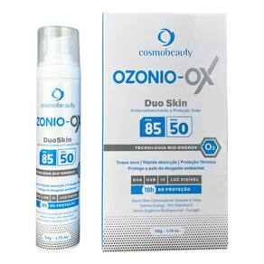 Ozonio OX Duo Skin Fps85 atua na proteção celular reduzindo o desgate ambiental que desvitaliza e causa o envelhecimento precoce. Possui toque seco e rápido absorção.Características e benefíciosAntienvelhecimento18h de ProteçãoTecnologia Bio Energy O3Proteção SolarToque SecoRápida absorçãoAtivosNano Óleo Ozonizado de GirassolOliva Dermo EnergyPró Vitamina DSilicio Orgânico BiodisponívelFucogel
