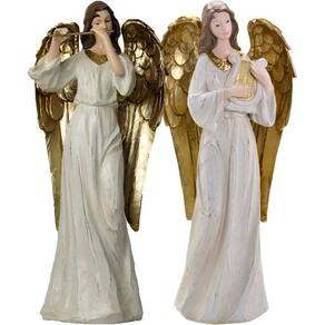 Dupla Anjos Músico Harpista Flautista Em Resina Natal 38cm -