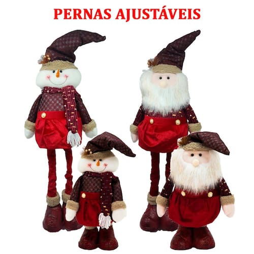 Dupla Bonecos Natalino Noel E Boneco Neve Pernas Ajustáveis -