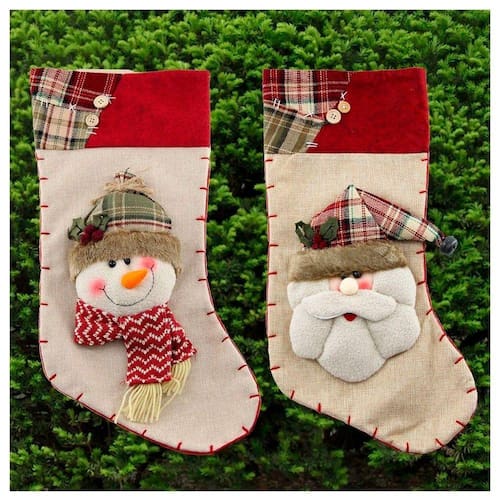 Dupla De Botas Meias Papai Noel E Boneco De Neve 48cm -