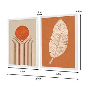 Dupla de Quadros Decorativos Boho Laranja Pena Formas