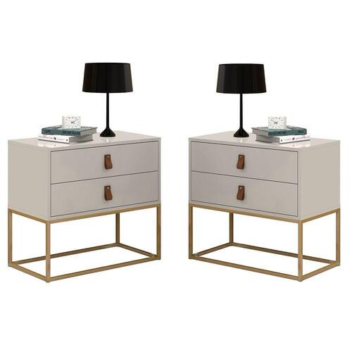 A Mesa de cabeceira possui os pés em ferro. As gavetas possuem corrediças telescópicas, o que dá maior qualidade, delicadeza e durabilidade ao produto e os puxadores em couro, somos pioneiros nessa tendencia que está bombando na europa.