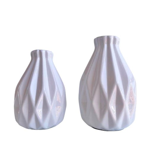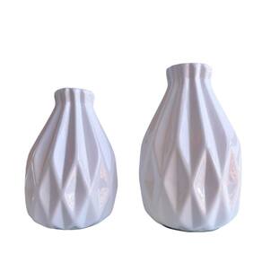 Decoração sala estante rack conjunto vaso centro de mesa geométrico 3D brilho na cor branca enfeite de mesa para arranjo artificial planta/orquídea.