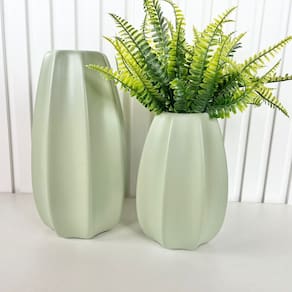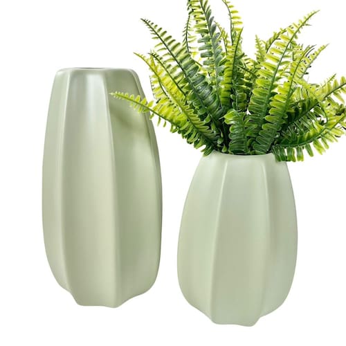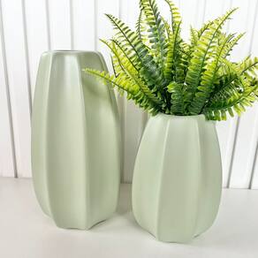 Decoração sala rack aparador dupla vaso centro de mesa grande e médio de cerâmica moderno trabalhado alto relevo na cor verde menta decoração luxo.