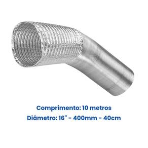 Duto Flexível Sem Isolamento 400mm - Rolo com 10 MetrosO Duto Flexível Sem Isolamento 400mm é confeccionado em laminado de alumínio com estrutura em arame de aço tratado, oferecendo alta flexibilidade, leveza e resistência à corrosão. Desenvolvido para sistemas de ventilação, exaustão e climatização, o produto apresenta excelente desempenho aerodinâmico, com costura espiral reforçada que garante vedação eficiente e durabilidade superior. Com faixas de alumínio incombustível e travas de alta qualidade, o duto assegura total estanqueidade, evitando vazamentos de ar e otimizando o fluxo em sistemas HVAC, exaustores, ar-condicionado e aquecimento. Seu design flexível permite curvas e desvios sem comprometer o desempenho, tornando a instalação rápida e prática em qualquer ambiente. Características Técnicas