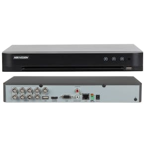 Este gravador pentahibrido aceita cinco tipos de sinal de entrada (HDTVI, AHD, CVI, CVBS e IP), oferecendo flexibilidade total para instalacoes novas ou modernizacao de sistemas legados. Ele tambem suporta a transmissao de audio via cabo coaxial, simplificando a instalacao de cameras com microfone integrado. Com capacidade para conectar ate 12 cameras IP (no modo IP aprimorado), o iDS-7208HQHI-M1/FA e uma solucao robusta e escalavel.