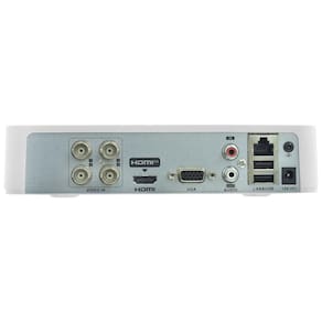 O DS-7104HGHI-M1 simplifica a instalação de sistemas com áudio, suportando a transmissão de áudio por meio do cabo coaxial (para câmeras compatíveis). O dispositivo conta com saídas de vídeo HDMI e VGA simultâneas, interface de rede para acesso remoto via Hik-Connect e espaço para instalação de um disco rígido SATA de até 4 TB, oferecendo uma solução completa em um chassi compacto.