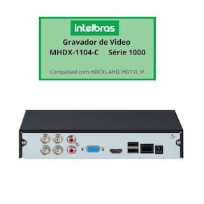 Dvr intelbras multi hd 04 canais mhdx 1104-c Gravador de video digital com 4 canais intelbras mhdx-1104-c. O gravador de vídeo, dvr intelbras mhdx 1104 c é ideal para quem deseja qualidade e custo benefício. Com design compacto, o gravador possui inteligência artificial que detecta a presença de pessoas e veículos, além de compressão de vídeo h.265+ e h.265 que mantém a alta qualidade das imagens mas consumindo pouco espaço de armazenamento. O dvr mhdx 1104 c permite acessar as imagens em tempo real e gravação através do aplicativo no celular. Possui saídas de vídeo vga e hdmi, e é compatível com as tecnologias hdcvi, ahd, hdtvi e ip.