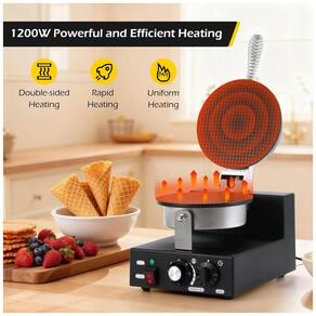 A Máquina de Waffle Cone Comercial Dyna-Living oferece desempenho excepcional para criar cones de sorvete crocantes e deliciosos, ideal para uso em restaurantes, festas ou em casa. Fabricada com plástico ABS de qualidade alimentar, resistente à umidade e ao desgaste, esta máquina possui potência de 1200W com aquecimento eficiente e uniforme em ambos os lados, garantindo waffles perfeitamente cozidos e crocantes. Seu controle independente de temperatura varia de 50°C a 300°C, aliado a um timer ajustável de 1 a 5 minutos, permite um preparo preciso, garantindo sempre o cone ideal. As placas de aquecimento são revestidas com Teflon antiaderente, facilitando o desprendimento dos cones e a limpeza rápida apenas com um pano úmido ou seco, tornando a máquina prática e funcional para qualquer cozinha ou estabelecimento. O kit completo inclui a máquina preta, pegador de alimentos, batedor, rolo para cones, espátula, pincel para óleo, esponjas para limpeza e manual de instruções (as cores dos acessórios podem variar). Versátil, pode ser usada para fazer diferentes tipos de cones e rolos de sorvete, garantindo momentos saborosos e divertidos para toda a família e clientes.