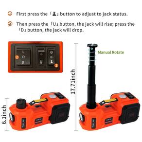 Macaco para carro elétrico potente O macaco para carro elétrico E HEELP é acionado hidraulicamente, permitindo lhe levantar veículos com peso inferior a 5 toneladas 11023 libras e leva menos de 2 minutos para elevar até sua altura máxima. O motor de alta potência instalado no macaco hidráulico quase corresponde a todos os automóveis, sedan, SUV, MPV e caminhão. O potente srenth hidráulico é mais competitivo do que outros macacos automotivos. Aplicado universal O macaco hidráulico do carro possui duas formas de alimentação clipe de bateria com tomada 12V DC e isqueiro. O motor de alta potência quase corresponde a todos os veículos do , sedan, SUV, MPV, caminhão, picape. Além disso, você pode usar o macaco do carro em sua motocicleta ou alguns outros itens pesados. Certifique se de operar com cuidado em terreno plano e que o peso da carga nunca exceda seu MAX. Bombeamento fácil Com uma bomba infladora de pneu instalada no macaco do carro elétrico, não há necessidade de se preocupar com a emergência de pneu quebrado no meio do nada. Equipado com visor de pressão dos pneus, você pode monitorar a pressão dos pneus durante o bombeamento. Agora, diga adeus às coisas problemáticas de troca de pneus Aplicação em várias cenas Este macaco hidráulico portátil é aplicado na garagem de sua casa, viagem, oficina mecânica, fazenda ou emergência intermediária. A tomada do carro e os conectores do cabo de alimentação são à prova dágua, fique à vontade para usar em dias chuvosos. Além disso, duas luzes LED ajudam a encontrar a área do elevador e iluminam o ambiente de trabalho, mesmo na meia noite escura Marca: Não Informado