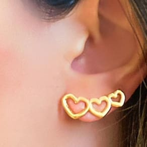 Acessório lindo, com coração e ornamentos, super delicado. O ear cuff é conhecido como um brinco que sobe pelo contorno da orelha, trazendo um ar moderno e sofisticado às produções. Essa versão se restringe a subir um pouco pela orelha, não por todo o contorno dela, por isso pode ser utilizado nas duas orelhas. Romântica e charmosa por se tratar de uma joia, essa peça vai em uma embalagem especial. Dados técnicos: altura: 2,5 cm largura: 0,8 mm