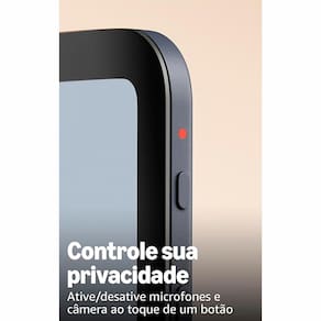 controles de privacidade, incluindo botão físico para ativar ou desativar os microfones.