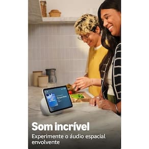 DESENVOLVIDO COM TECNOLOGIA E DESIGN Smart display de 8,7" com design sofisticado, que combina uma tela HD touchscreen de cores vibrantes, com área de visualização 15% maior em comparação ao Echo Show 8 (3 Geração), alta performance e hub de casa inteligente integrado. Além disso, suas músicas e programas favoritos terão um som incrível com o áudio espacial envolvente.