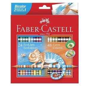 Lápis De Cor Bicolor 48 Cores Com 24 Lápis Faber-Castell Deixe a criatividade fluir com os Ecolápis de Cor Bicolor da Faber-Castell. Este kit contém: 24 Ecolápis Bicolor com 48 cores + 1 apontador + 1 borracha Produto atóxico e não perecível. 2 cores em 1: cores em dobro 24 Ecolápis = 48 Cores Ponta max resistente Cores mais vivas. Registro Inmetro: 000777/2013 Sobre a Faber-Castell Líder mundial na produção de EcoLápis de madeira reflorestada, a história da Faber-Castell se confunde com a própria criação do lápis. Fundada em 1761 na Alemanha, hoje a empresa possui escritórios em mais de 100 países. No Brasil, onde está presente desde 1930, três fábricas (São Carlos-SP, Prata-MG e Manaus-AM) e 9.600 hectares de floresta cultivada (também em Prata-MG) são as responsáveis pela produção de 2 bilhões de EcoLápis por ano. Com mais de 70 mil postos de venda no Brasil, exporta também para mais de 70 países. Seu portfólio inclui: EcoLápis de cor e de grafite, giz de cera, tintas escolares, canetinhas hidrográficas, apontadores, borrachas, canetas, lapiseiras, kits criativos, produtos artísticos, instrumentos e acessórios de luxo para a escrita.