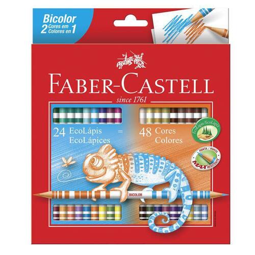 Lápis De Cor Bicolor 48 Cores Com 24 Lápis Faber-Castell Deixe a criatividade fluir com os Ecolápis de Cor Bicolor da Faber-Castell. Este kit contém: 24 Ecolápis Bicolor com 48 cores + 1 apontador + 1 borracha Produto atóxico e não perecível. 2 cores em 1: cores em dobro 24 Ecolápis = 48 Cores Ponta max resistente Cores mais vivas. Registro Inmetro: 000777/2013 Sobre a Faber-Castell Líder mundial na produção de EcoLápis de madeira reflorestada, a história da Faber-Castell se confunde com a própria criação do lápis. Fundada em 1761 na Alemanha, hoje a empresa possui escritórios em mais de 100 países. No Brasil, onde está presente desde 1930, três fábricas São Carlos-SP, Prata-MG e Manaus-AM e 9.600 hectares de floresta cultivada também em Prata-MG são as responsáveis pela produção de 2 bilhões de EcoLápis por ano. Com mais de 70 mil postos de venda no Brasil, exporta também para mais de 70 países. Seu portfólio inclui: EcoLápis de cor e de grafite, giz de cera, tintas escolares, canetinhas hidrográficas, apontadores, borrachas, canetas, lapiseiras, kits criativos, produtos artísticos, instrumentos e acessórios de luxo para a escrita. Ean: 7891360502203