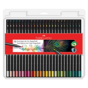 O Ecolápis de Cor Faber-Castell SuperSoft possui a exclusiva mina supermacia, que garante o máximo de conforto ao pintar. O estojo contém 50 cores mais vivas com excelente cobertura, sobre papéis claros e escuros. Além disso, a embalagem é reutilizável e 100% reciclável. Produzido com madeira 100% reflorestada e certificada pelo FSC: respeito ao meio ambiente. ATENÇÃO! Não recomendável para crianças de até 3 três anos, por conter parte s pequena s que pode m ser engolida s ou aspirada s . Produto atóxico e não perecível. Este produto pode ser reciclado. Vamos limpar o planeta juntos. Características: - Cores incríveis e mais vibrantes - Mina supermacia com maior deposição de pigmento - Embalagem reutilizável e 100% reciclável - Excelente cobertura sobre papéis claros e escuros - Madeira 100% proveniente de manejo florestal sustentável e certificado pelo FSC: respeito ao meio ambiente - Produto atóxico e não perecível Especificações Marca: Faber-Castell Modelo: SuperSoft Código: 120750SOFT Cores: 50 Cores Produto contém: Estojo com 50 Ecolápis de Cor Registro Inmetro: 000777/2013 Sobre a Faber-Castell Líder mundial na produção de EcoLápis de madeira reflorestada, a história da Faber-Castell se confunde com a própria criação do lápis. Fundada em 1761 na Alemanha, hoje a empresa possui escritórios em mais de 100 países. No Brasil, onde está presente desde 1930, três fábricas São Carlos-SP, Prata-MG e Manaus-AM e 9.600 hectares de floresta cultivada também em Prata-MG são as responsáveis pela produção de 2 bilhões de EcoLápis por ano. Com mais de 70 mil postos de venda no Brasil, exporta também para mais de 70 países. Seu portfólio inclui: EcoLápis de cor e de grafite, giz de cera, tintas escolares, canetinhas hidrográficas, apontadores, borrachas, canetas, lapiseiras, kits criativos, produtos artísticos, instrumentos e acessórios de luxo para a escrita. Ean: 7891360654124