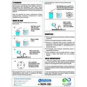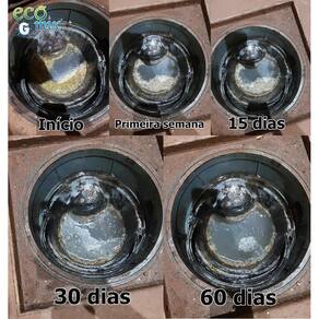 Limpeza prática de fossas, caixas de gordura e prevenção contra entupimentos no encanamento. AÇÃO DO PRODUTODescola e degrada toda gordura alojada nas paredes das caixas de gordura, tubulações e fossas sépticas, reduzindo a incidência de baratas e eliminando o mau cheiro.DEFINIÇÃOProduto biológico em gel, ecológico, não tóxico e não corrosivo. Incompatível com substâncias ácidas ou a base de cloro e soda cáustica. O uso é absolutamente seguro, sendo inofensivo à saúde de pessoas e animais e não causa danos ao meio ambiente.VANTAGENSFácil aplicação e não apresenta nenhum risco à saúde;Diminui o mau cheiro de pias, ralos e vasos sanitários;Reduz a gordura em poucos dias, evitando a limpeza mecânica;Previne o entupimento da tubulação e transbordamento de fossas;Diminui as pragas de esgoto baratas, insetos, etc. ;Garante maior vida útil às fossas;Não causa danos ao meio ambiente. MODO DE USOAplicação: Diluir 01 colher de sopa 25g do produto ECOMIX G em 500 ml de água e aplicar diretamente no local desejado por 05 dias consecutivos.Manutenção Preventiva: manter 01 ou 02 aplicações semanalmente para evitar a incidência de maus odores e entupimentos por gordura.DICAS IMPORTANTES1. Para desentupir o encanamento ou diminuir a gordura da caixa de gordura, fazer as aplicações preferencialmente à noite, quando o fluxo de água é menor, para que os microrganismos tenham um maior tempo de retenção na tubulação e caixa de gordura. Aplicação direta na fossa ou sumidouro pode ser em qualquer horário.2. Não use cloro, água sanitária ou desinfetante junto com ECOMIX G, pois esses produtos matam os microrganismos ativos da formulação. Produtos incompatíveis: soluções a base de cloro e/ou amônia quaternária.3. O uso de ECOMIX G é totalmente seguro, inofensivo à saúde de pessoas e animais e não causa danos ao meio ambiente.Especificações TécnicasMarca: EcomixModelo: GMaterial: Microrganismos inoculados em gelLocal indicado: Pias, ralos, vasos sanitários, mictório, sumidouros, pelo suspiro da fossa, direto na caixa de gorduraUso indicado: Degradar matéria orgânica da caixa de gordura e fossa, desobstruir/desentupir encanamento, descolar a gordura presa na tubulaçãoQuantidade: 01 Unidade de 500 gramasRendimento: Em média 20 aplicações