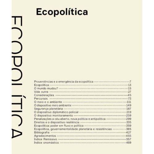 Ousado e desafiador, esse livro enfrenta a dificil tarefa de diagnosticar o presente, apontando para as rupturas profundas nas formas pelas quais se manifesta o poder, no governo da vida e do planeta. Ecopolitica remete a ilimitada expansao e a progressiva transformacao do controle biopolitico das populacoes para o governo de todo o sistema planetario, em nome do pluralismo democratico, da inclusao social, da boa governanca e da salvacao das especies. Como aqui se mostra enfaticamente, a racionalidade neoliberal reconfigura todas as dimensoes da vida social em bases economicas e o governo das condutas se estende a propria producao da subjetividade do individuo tido como empresario de si mesmo . Esse instigante livro tambem nos apresenta uma cartografia das liberdades, das lutas e resistencias que se abrem com a acao direta, a antipolitica e as infinitas praticas da liberdade, de que ele proprio e testemunho. Assim, e tambem da transformacao libertaria que tratam essas pesquisas, das linhas de fuga e das resistencias possiveis na sociedade de controle, que coloca no centro das atencoes os temas da seguranca, dos direitos e das penalizacoes, ampliando consideravelmente seu dominio. Se as formas de controle e sujeicao na era planetaria se tornam muito mais complexas, abrangentes, sofisticadas e violentas, e preciso perceber por que emaranhados irrompem fluxos, fissuras e devires em direcao a construcao de outros espacos, heterotopias de si, do mundo e da vida, no aqui e agora. Margareth Rago