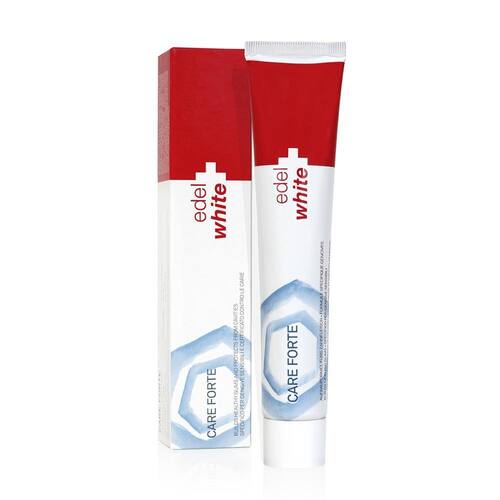 Devido à combinação de seus ingredientes ativos, o Creme dental Care Forte previne a cárie, favorece a remineralização do esmalte dentário e protege as gengivas. A associação de Fluoreto de Sódio diminui a incidência de cárie, interferindo negativamente no crescimento das principais bactérias cariogênicas, evitando o acúmulo de placa bacteriana e a desmineralização do esmalte dentário. Fortifica a gengiva devido o efeito adstringente do Lactado de Alumínio. Seu baixo fator de abrasividade evita o desgaste do esmalte e tem sido um grande coadjuvante no tratamento de sensibilidade. A ausência de Lauril Sulfato de Sódio evita o ressecamento da mucosa, mantendo a umidade da boca sendo indicado também para xerostomia. RDA de 60. Flúor de 1450 ppm.