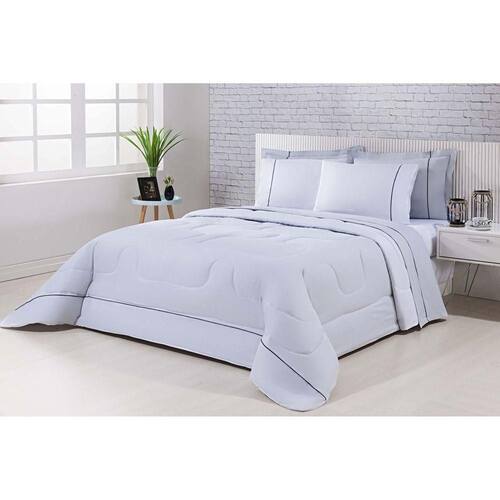 Edredom 100% Algodão Percal 150 Fios Dupla Face Casal Gran Moratta 1 Peça - Cinza/branco