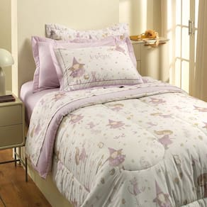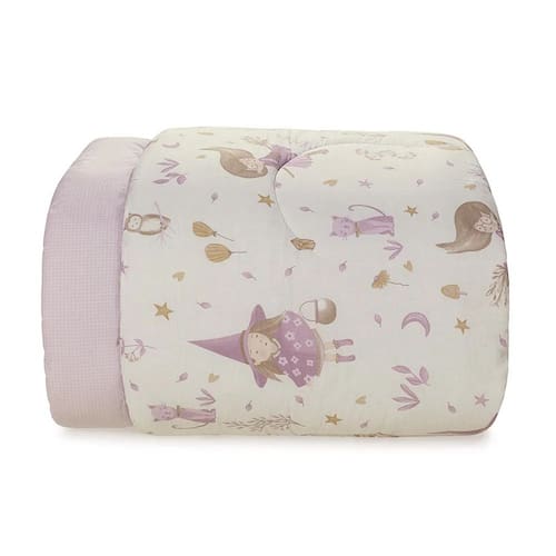 Com o Edredom Fantasia Casal Percal 200 Fios o quarto da sua pequena ficará ainda mais encantadora, além aconchegante em 100% algodão. Este edredom é dupla face, apresentando uma estampa de bruxinhas e elementos mágicos de um lado e um verso pied de poule lilás, adicionando um toque de elegância. Proporcione noites de sonhos mágicos e confortáveis para sua pequena. Adquira já e transforme o quarto em um reino de fantasia.