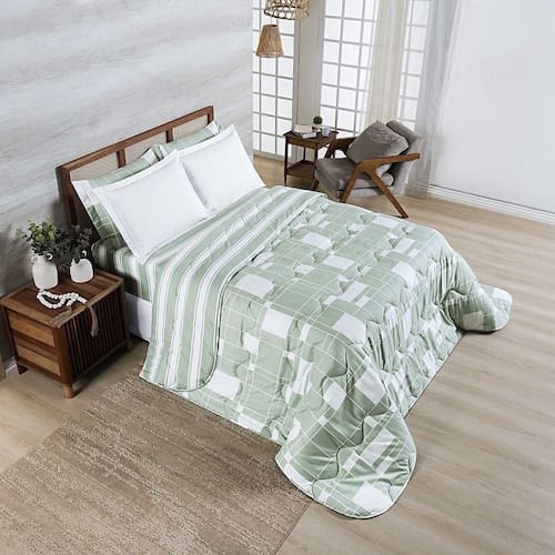 Praticidade e Aconchego: O enchimento 100% poliéster torna o edredom leve e quente na medida certa, além de ser fácil de cuidar e manter sempre bonito.