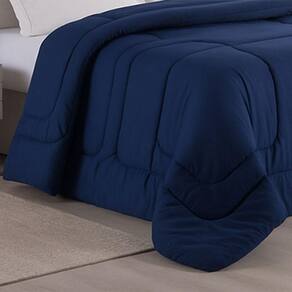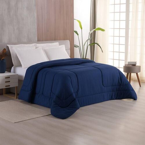 Edredom Bali Liso Solteiro 01 Peça Micropercal Dupla Face 400 Fios Macio - Azul Marinho - 100% Poliéster